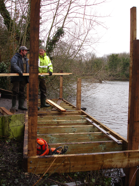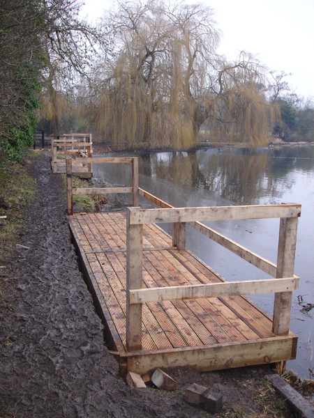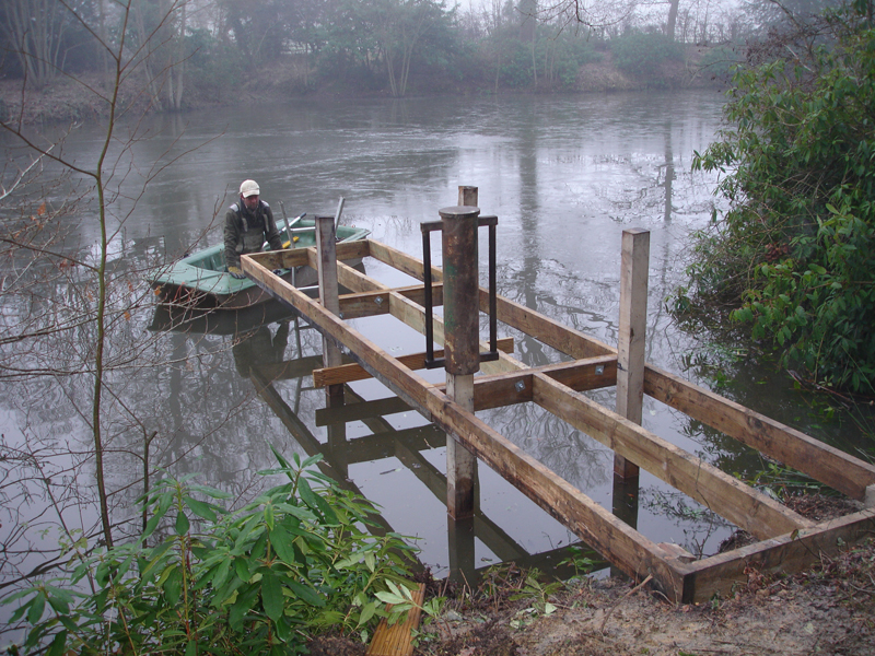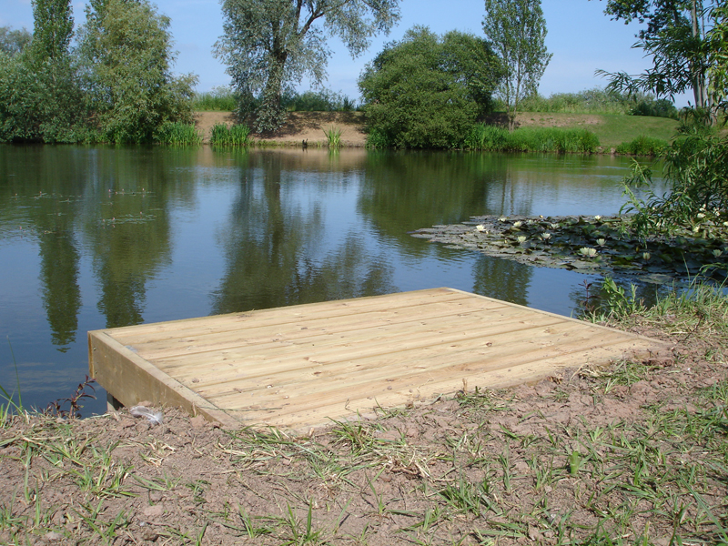 We offer a large range of custom built fishing platforms, disabled fishing pegs, floating pontoons and jetties, all installed to the highest standards. Designed to be both attractive and functional, we work to the customers requirements and build from a wide range of suitable materials. Fishing clubs who want the most swims from a water will benefit from our standard 1.5m x 1.2m match/pleasure platforms to fish from. Carp syndicates often choose larger decked platforms to allow big fish to be landed with ease. Trout fishery owners with confined banks can offer customers improved ease of casting by choosing our jetties or floating pontoons.